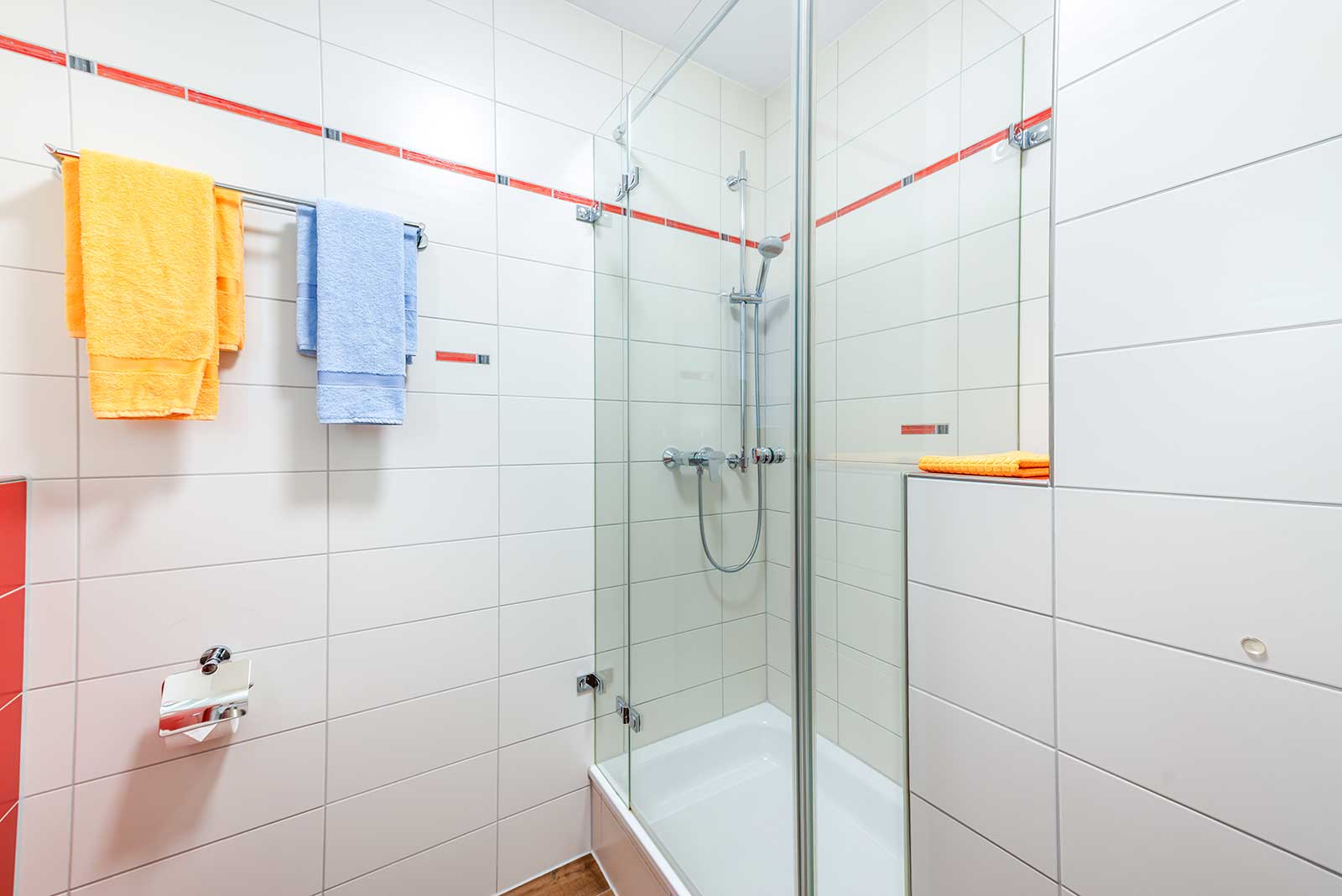 Das Bad ist mit Dusche und WC ausgestattet. Ein 32” Smart-TV, ein praktischer Schreibtisch und ein geräumiger Schrank sorgen für zusätzlichen Komfort. In einigen Zimmern lädt eine gemütliche Couch zum Entspannen ein.